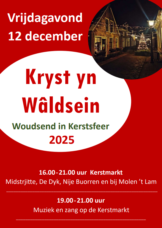 12 december 2025 16:00Geniet op vrijdag 12 december van de kerstsfeer in het sfeervolle Woudsend.